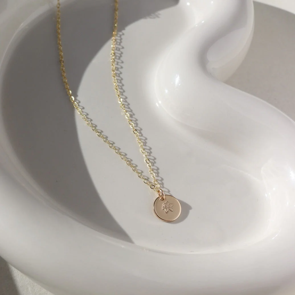Our Birth Flower Necklace makes a sweet and sentimental gift for a mama or grandma. Crafted with an oval disc that is hand-stamped with the flower associated with the month of the child's birth, it is a beautiful and meaningful symbol of the special bond between mother and child.