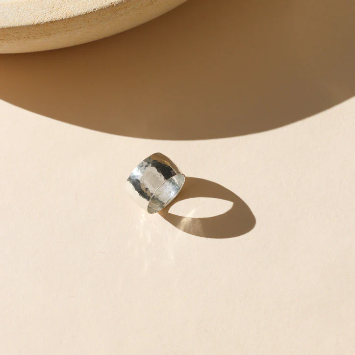 The Hammered Dome Ring is bold, sculptural, and timeless. Its rounded silhouette is finished with a hand-hammered texture that catches the light beautifully, giving it rich dimension with every movement. Substantial yet comfortable, it’s designed to make a statement. We recommend sizing up if you’re between sizes for the best fit.