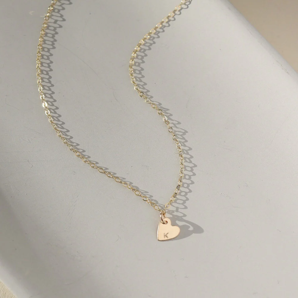 Show some love with our Lennon Heart Necklace. Lennon is an Irish name meaning Lover or Sweetheart, making it the perfect gift for your special someone. This personalized piece features a delicate heart that's hand-stamped with an initial of your lover, sweetheart, or any other loved one, to keep them close to your heart always. Choose up to 5 hearts suspended from our bar and link chain to create a truly one-of-a-kind piece.