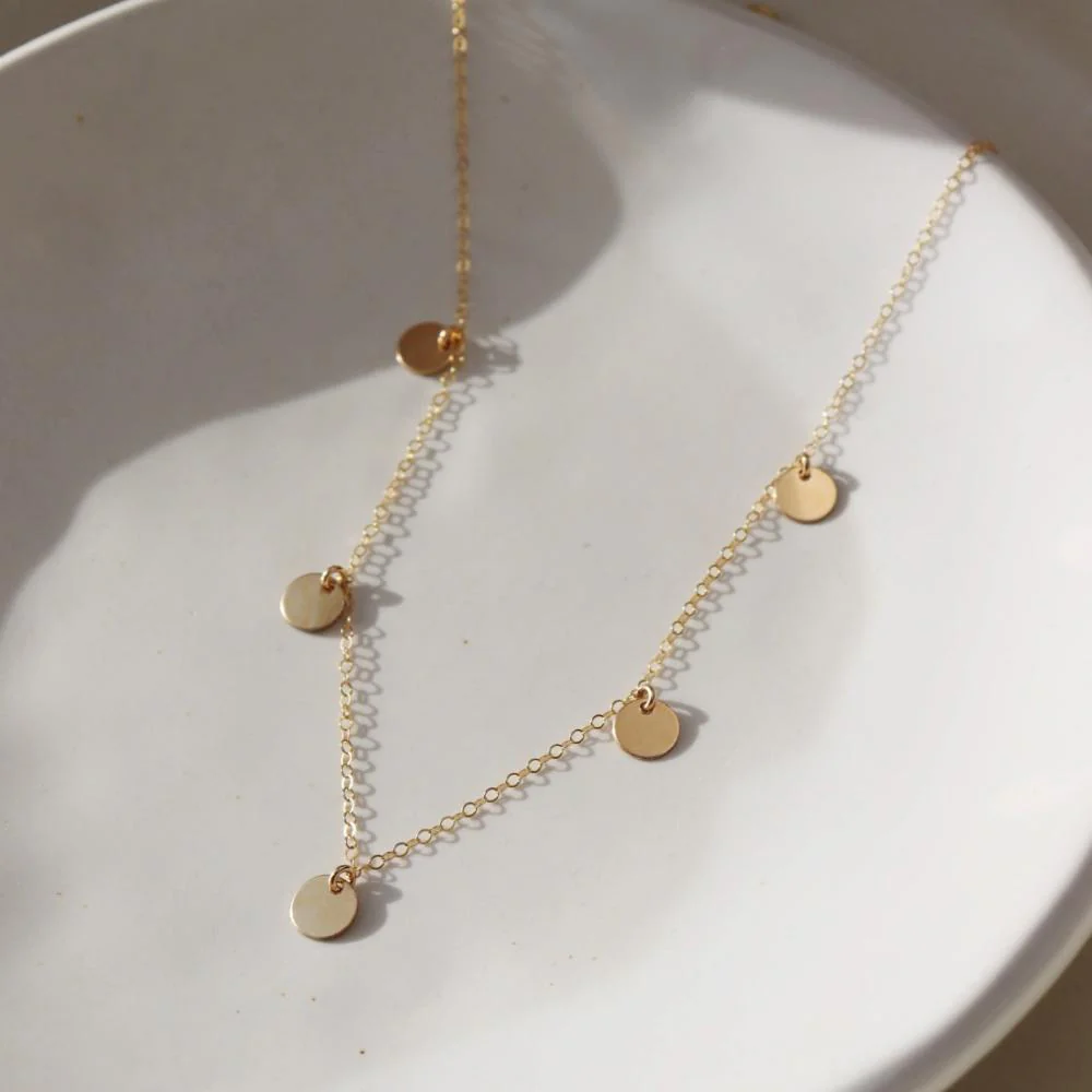 The Suncatcher Necklace features five radiant medallions suspended from our daintiest chain. A timeless piece that adds a touch of light to any look. Beautiful on its own and perfectly stackable!
